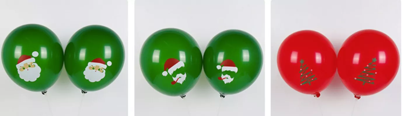 크리스마스 라텍스 풍선은 다양한 크기로 제공됩니다. 베스트셀러 크기에는 6 인치, 10 인치, 12 인치, 18 인치, 24 인치, 36 인치 등이 있으며, 다른 경우에는 장식 요구에 적합합니다. 예를 들어, 12 인치 라텍스 풍선은 종종 풍선 아치, 데스크탑 장식 등을 만드는 데 사용되며 36 인치 큰 풍선은 실외 또는 대형 이벤트에 적합합니다.