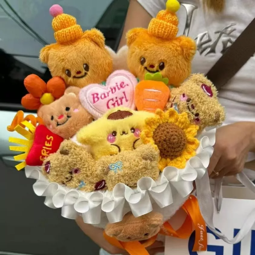 인형 꽃다발은 부드럽고 귀여운 봉제 인형을 전통적인 꽃다발과 영리하게 결합합니다. 그들은 꽃이 아니지만 감정과 기쁨을보다 창의적이고 지속적인 방식으로 전달하여 파티와 선물을주는 행사에 독특한 추가를 만듭니다. 그들의 핵심 가치는 인형의 편안한 느낌을 꽃다발의 의식적 느낌과 혼합하는 데 있습니다.
