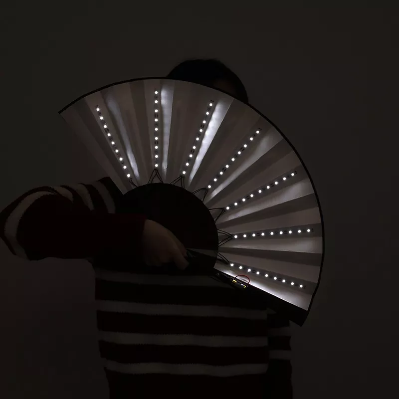 그래서 당신은 댄스 플로어 한가운데에 있습니다. 비트가 떨어지고 손목을 가볍게 치면 팬이 즉시 켜집니다. 부드러운 무지개 파도, 밝게 깜박이는 패턴 등 기분에 따라 달라집니다. 실용적일 뿐만 아니라; 그것은 당신의 분위기의 일부입니다. 리듬에 맞춰 휘둘러 공기를 빛으로 물들이세요. 모두가 알아 차립니다.