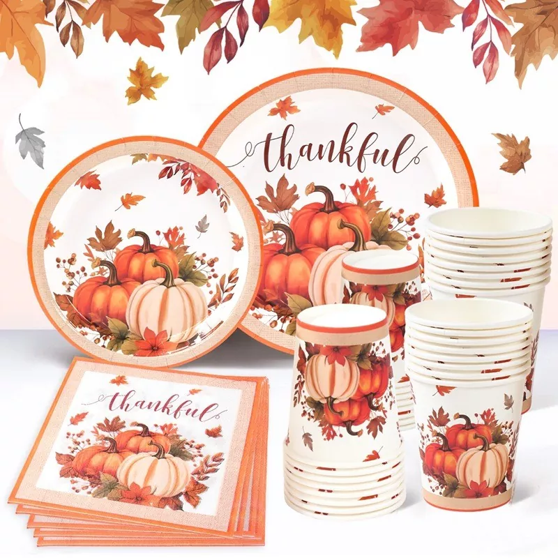 추수감사절 일회용 식기 세트는 가족 모임을 넘어 다양한 용도로 사용할 수 있습니다. 이 세트는 추수감사절에 열리는 회사 팀 빌딩 행사에도 적합합니다. 가볍고 휴대가 간편하여 회의나 야외 피크닉에 적합합니다. 추수감사절 행사를 주최하는 학교의 경우, 이 세트는 학생들에게 안전하고 편리하며 교사들이 설거지 걱정을 덜어줍니다.
