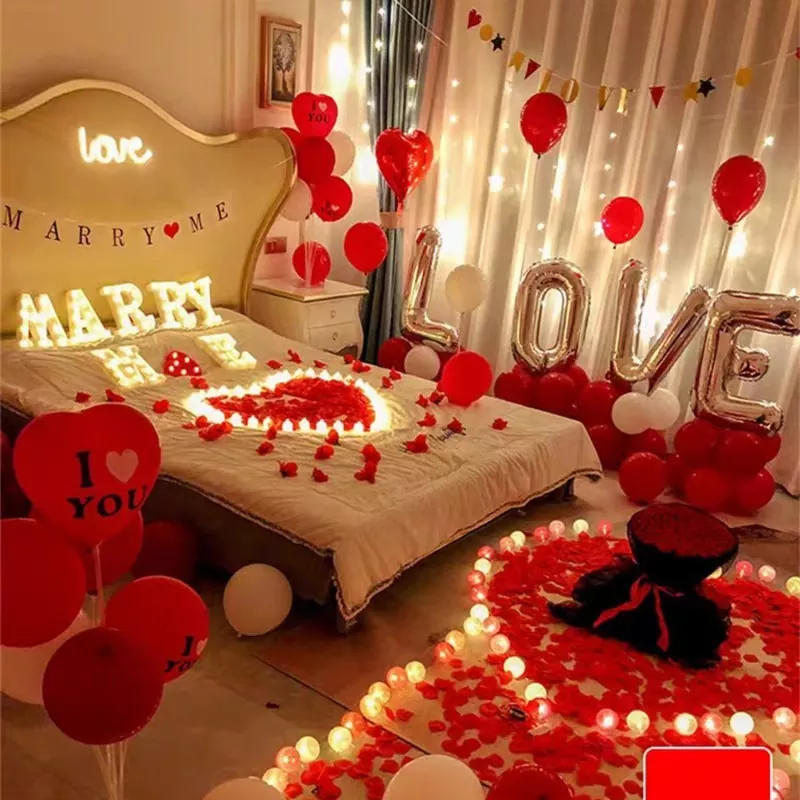 세트에는 다양한 색상과 모양의 풍선을 포함하여 풍부하고 다양한 스타일이 있습니다. 열정적 인 사랑을 상징하는 고전적인 빨간색과 분홍색 풍선이 있습니다. 꿈꾸는 보라색과 연한 파란색 풍선도 있습니다. 모양의 관점에서, 공통 원 외에도 사랑과 글자와 같은 특별한 모양도 있습니다. 예를 들어, 큰 하트 풍선은 사랑을 직접 표현할 수 있습니다. "사랑"레터 풍선은 낭만적 인 고백으로 결합되어 다양한 창의적인 레이아웃 요구를 충족시키고 독특한 발렌타인 데이 낭만적 인 장면을 쉽게 만들 수 있습니다.